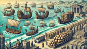 یونانیوں اور رومیوں نے شپنگ ٹیکنالوجی میں مزید ترقی کی۔ یونانیوں نے بڑے تجارتی جہاز اور “ٹریریم” (تین قطاروں والے چپو والے جنگی جہاز) تیار کیے، جن کی مدد سے وہ بحری جنگوں اور تجارتی راستوں پر حاوی ہو گئے۔ رومیوں نے، جو اپنی انجینئرنگ مہارت کے لیے مشہور تھے، جہازوں کے ڈیزائن کو بہتر بنایا اور وسیع بندرگاہی شہر تعمیر کیے تاکہ تجارت کو فروغ دیا جا سکے۔ انہوں نے یورپ، افریقہ اور ایشیا کو جوڑنے والے تجارتی نیٹ ورکس قائم کیے، جس کی وجہ سے بحیرہ روم اقتصادی سرگرمیوں کا مرکز بن گیا۔