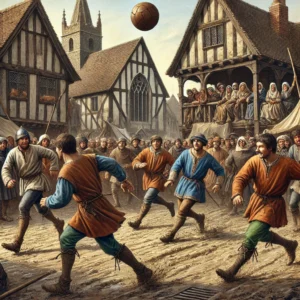 In medieval Europe, a rough form of football emerged. It was chaotic and had very few rules. Towns and villages would compete by kicking a ball through the streets, often leading to violence and property damage. The game was so dangerous that English kings like Edward II and Henry IV tried to ban it!
