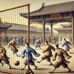 - China (200 BC) – A game called Cuju involved kicking a leather ball into a net. It was played for military training and entertainment.