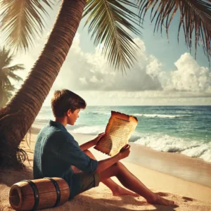 Excited, Suleman ran to the biggest palm tree near and start dugging the ground. He think there will be gold or shiny jewels, but instead, he found an old book. He Confused, he opened it and saw a message inside: “The real treasure is knowledge.”