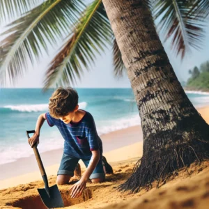 Suleman went to beach side on daily basis. One morning, he found an old bottle on the beach stuck in the sand. quickly, he picked it up and pulled out a note inside. “Find the treasure under the tallest palm tree,” written in note.